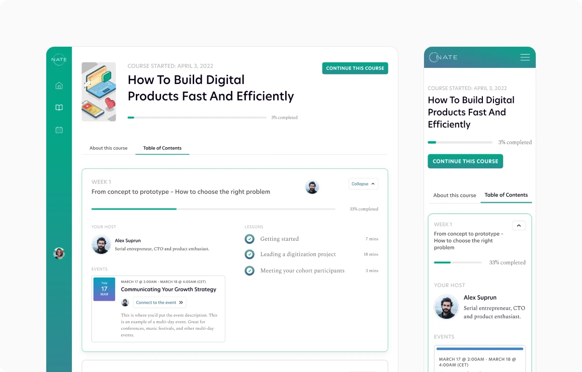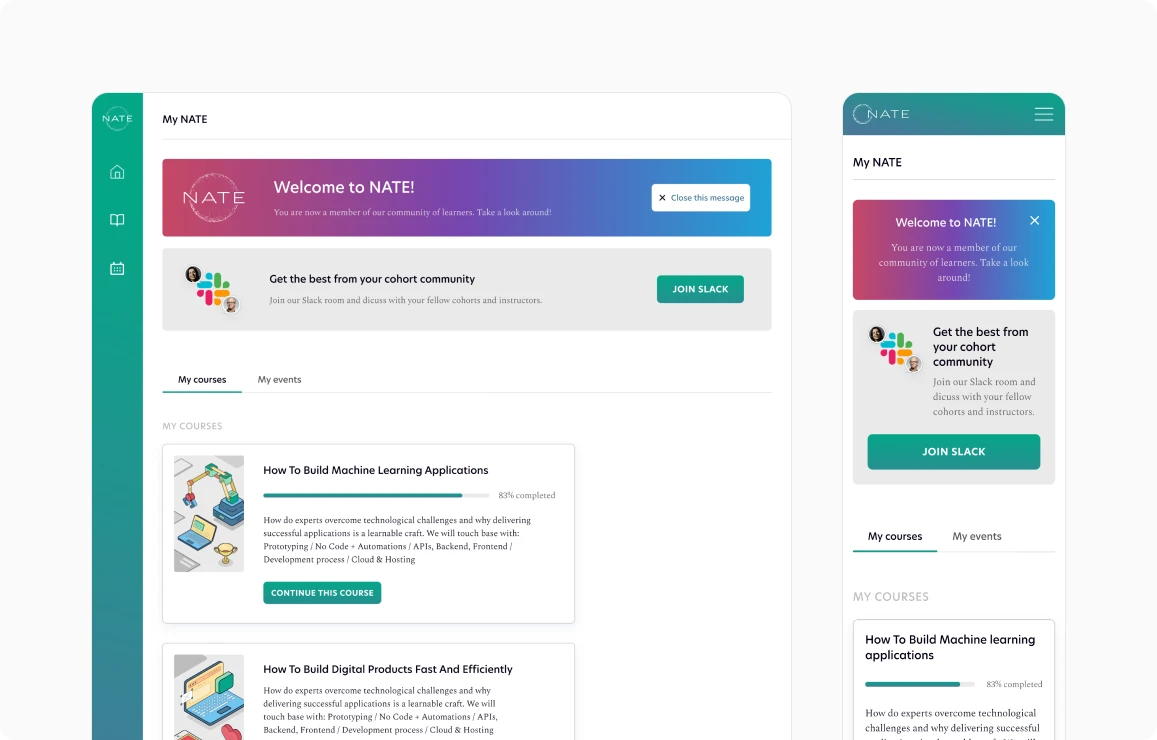 Nate is a professional online learning platform in the field of technology for people with non-technical background who want to accelerate their career.